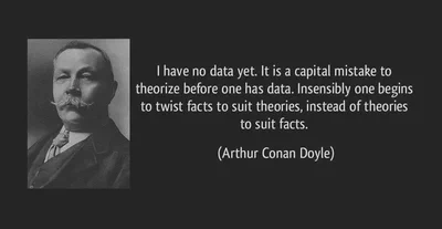 Sir Arthur Conan Doyle famously said that “I have no data yet. It is a capital mistake to theorize before one has data. Insensibly one begins to twist facts to suit theories, instead of theories to suit facts.” The quote is in the context of solving crime, but I often think it can be applied to research as well.
